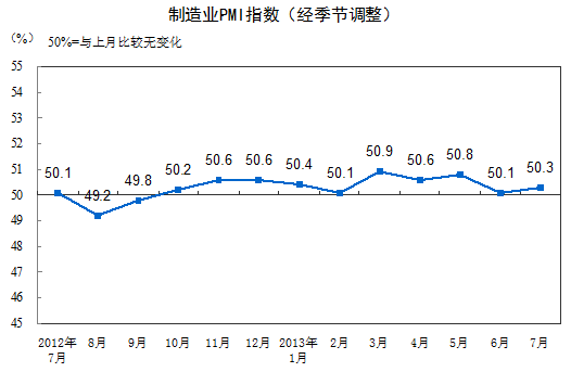 中國制造業采購經理指數(PMI)為50.3%,比上月微升0.2個百分點。 分企業規模看,大型企業PMI為50.8%,比上月上升0.4個百分點;中型企業PMI為49.6%,比上月下降0.2個百分點;小型企業P...