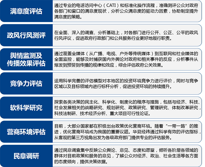 華夏經緯可以為各級政府部門提供以下方面的研究咨詢服務: